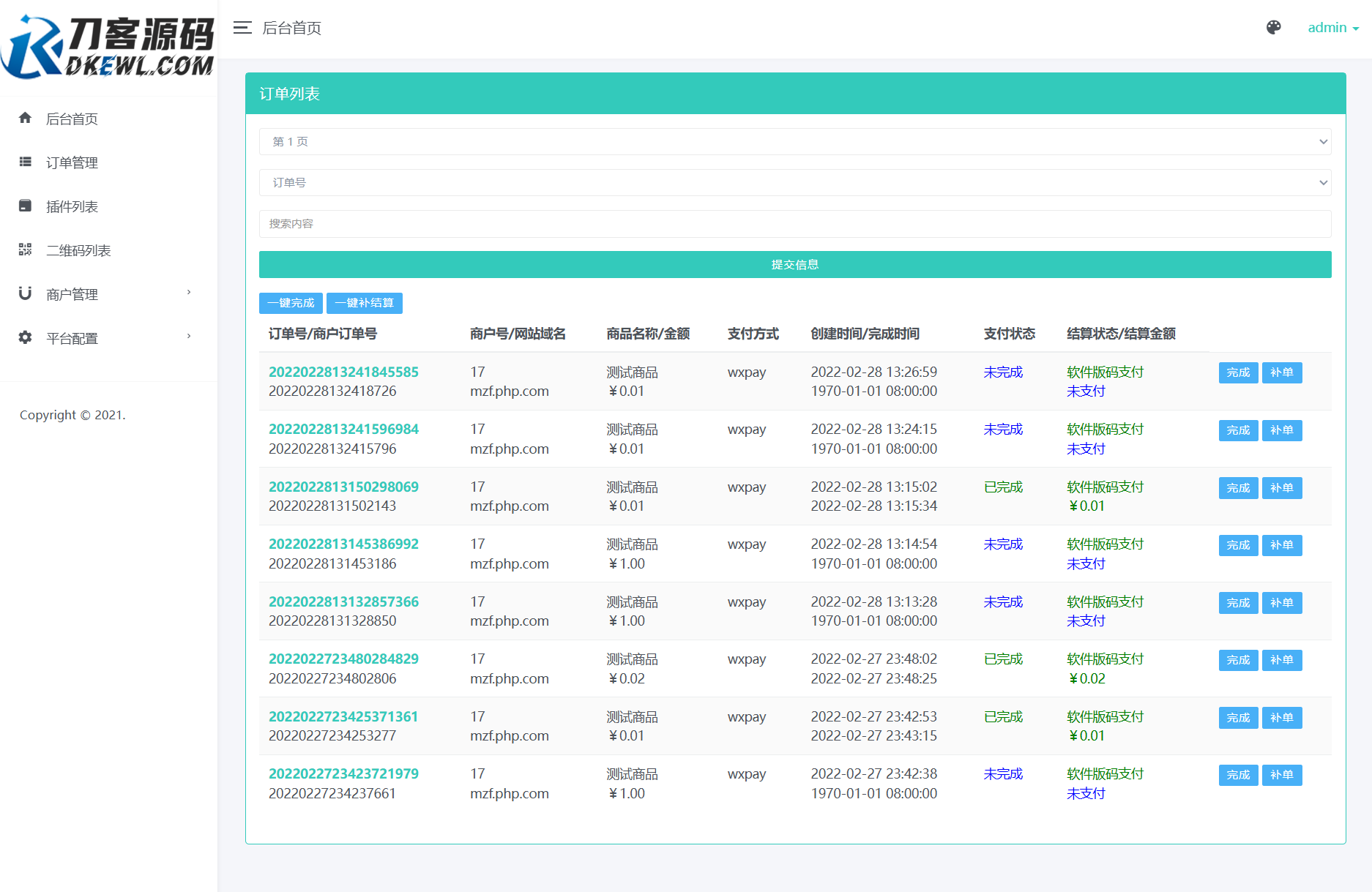 管理后台:运营人员使用,可管理商户以及商户可支付额度等信息