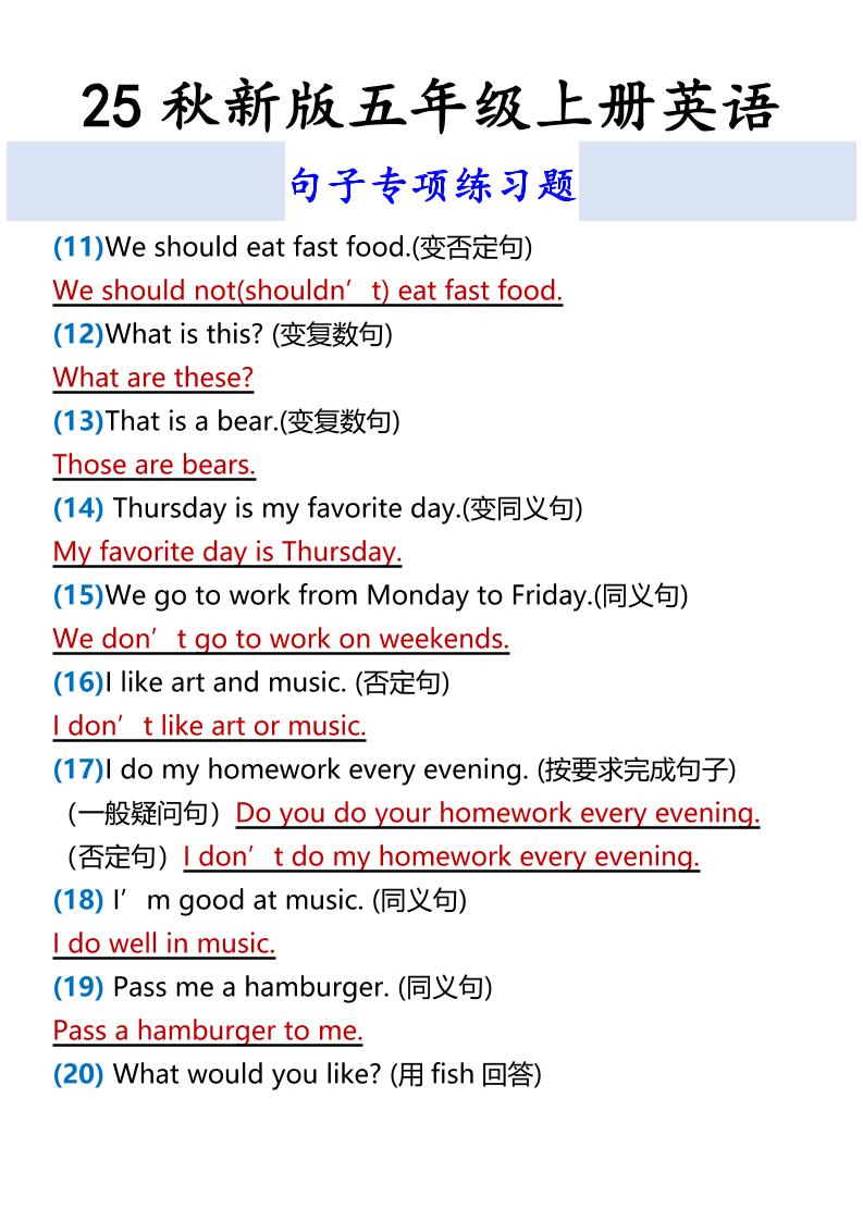 【2025秋新版】五年级上册英语句子专项练习题迦哆社长3个月前更新关注私信0665110【2025秋新版】五年级上册英语句子专项练习题此内容为免费阅读,请登录后查看¥0 登录查看免费阅读已售 4 ——预览已结束,还剩2页未读——开通会员后可免费下载高清完整文档 课程下载: 隐藏内容,请登录后查看 © 版权声明 文章版权声明 1、本网站名称:迦哆网创社 2、本站永久网址:https://www.jxxkja.com 3、本网站的文章部分内容可能来源于网络,仅供大家学习与参考,如有侵权,请联系站长QQ2723511102进行删除处理。 4、本站一切资源不代表本站立场,并不代表本站赞同其观点和对其真实性负责。 5、本站一律禁止以任何方式发布或转载任何违法的相关信息,访客发现请向站长举报 6、本站资源大多存储在云盘,如发现链接失效,请联系我们我们会第一时间更新。 THE END学科集合英语 喜欢就支持一下吧点赞110 分享QQ空间微博QQ好友海报分享复制链接收藏