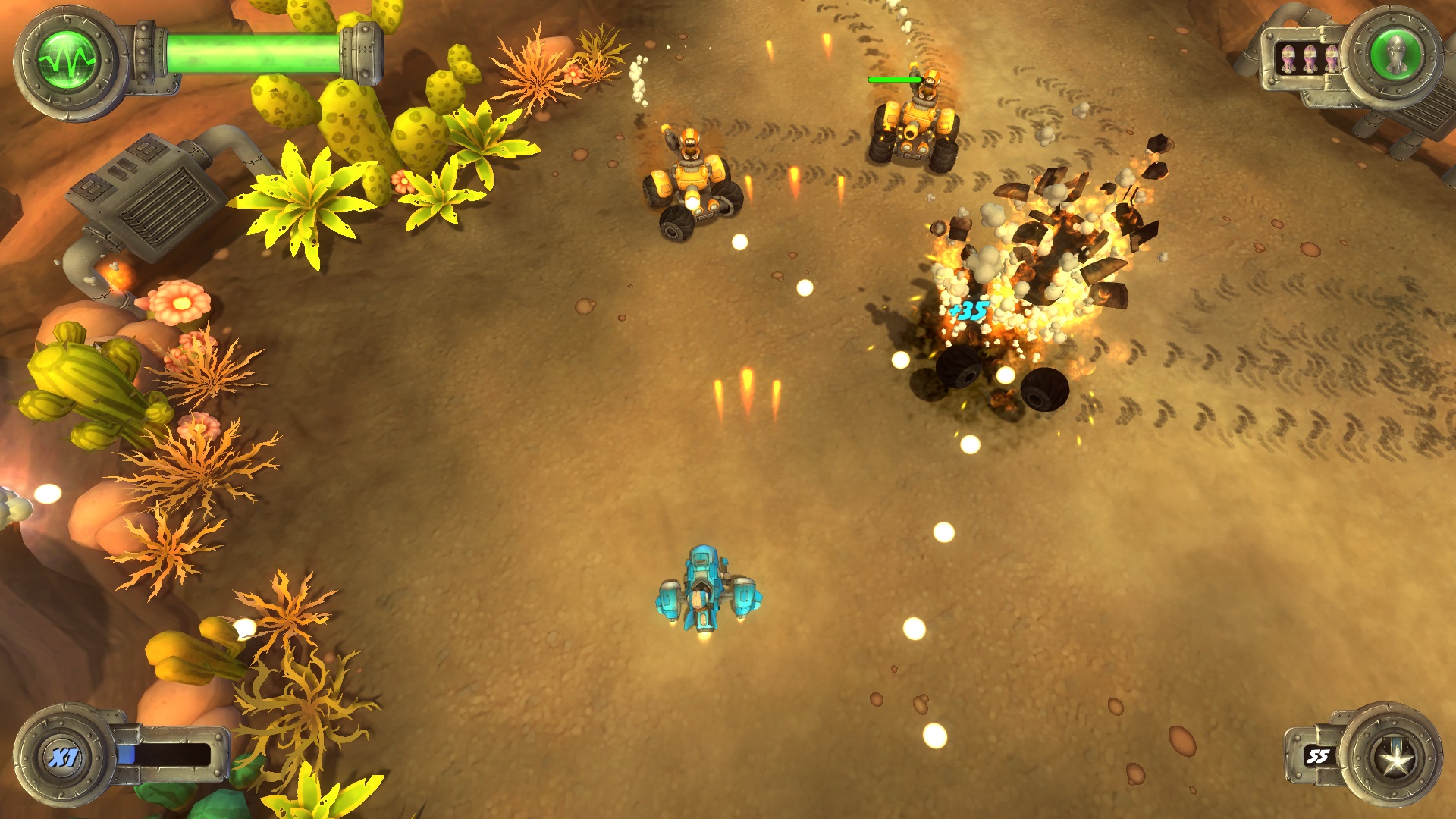 忘掉复杂的升级和冗长的剧情吧!在这里,你就是那位神秘的蓝色骑士,驾驶着战机一头扎入由几何图形与狂野色彩构成的迷幻世界。游戏的核心玩法直接而猛烈:一边在自动卷轴的关卡中高速穿梭,一边用你手中的双枪和收集到的各种强化武器,向蜂拥而至的抽象敌人倾泻暴雨般的攻击。击败敌人会掉落能量,让你随时在多种特殊武器间自由切换,从散射激光到追踪导弹,用最炫目的方式清扫战场!