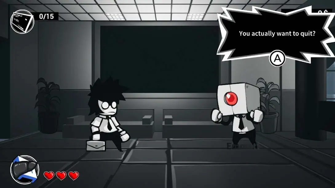 战斗系统:采用横向卷轴动作设计,玩家需击败心智混乱的同事,使用随机技能和资源提升战斗力。