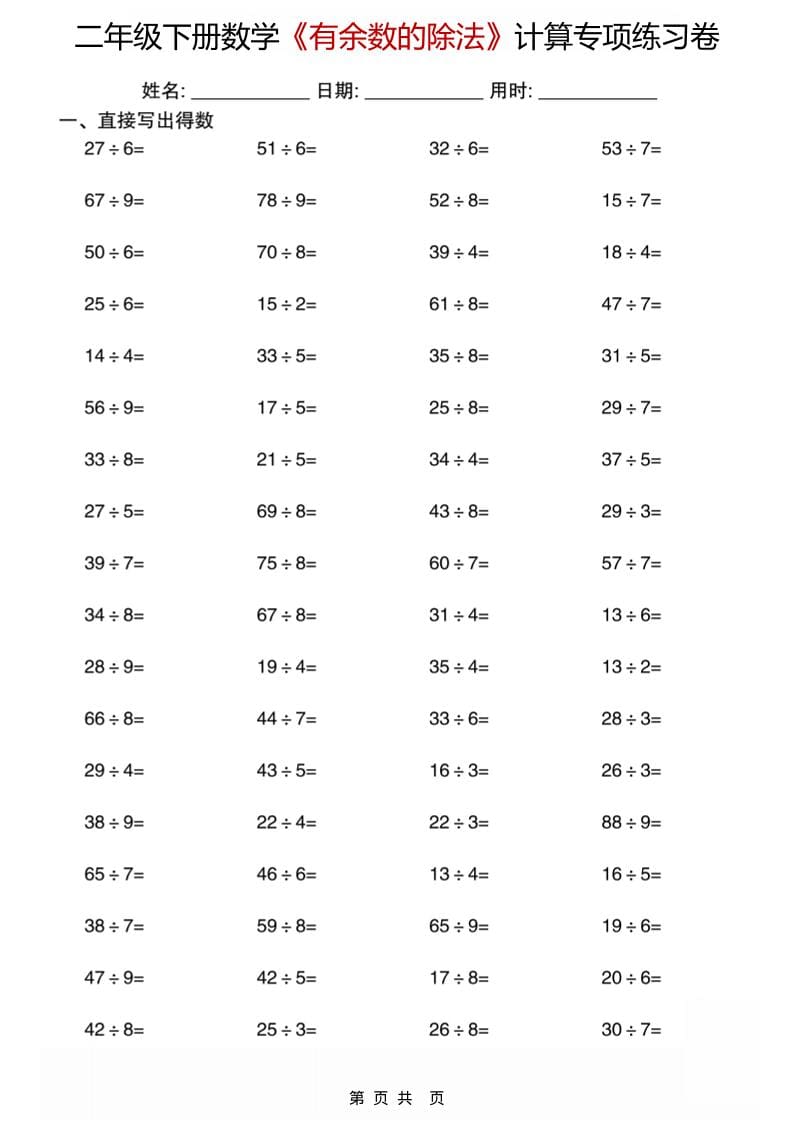 二年级下数学《有余数的除法》计算专项练习卷迦哆社长9小时前更新关注私信060690二年级下数学《有余数的除法》计算专项练习卷此内容为免费阅读,请登录后查看¥0 登录查看免费阅读已售 4 ——预览已结束,还剩28页未读——您已获得此文档下载权限,请点击底部下载完整文档 课程下载: 隐藏内容,请登录后查看 © 版权声明 文章版权声明 1、本网站名称:迦哆网创社 2、本站永久网址:https://www.jxxkja.com 3、本网站的文章部分内容可能来源于网络,仅供大家学习与参考,如有侵权,请联系站长QQ2723511102进行删除处理。 4、本站一切资源不代表本站立场,并不代表本站赞同其观点和对其真实性负责。 5、本站一律禁止以任何方式发布或转载任何违法的相关信息,访客发现请向站长举报 6、本站资源大多存储在云盘,如发现链接失效,请联系我们我们会第一时间更新。 THE END学科集合数学 喜欢就支持一下吧点赞90 分享QQ空间微博QQ好友海报分享复制链接收藏