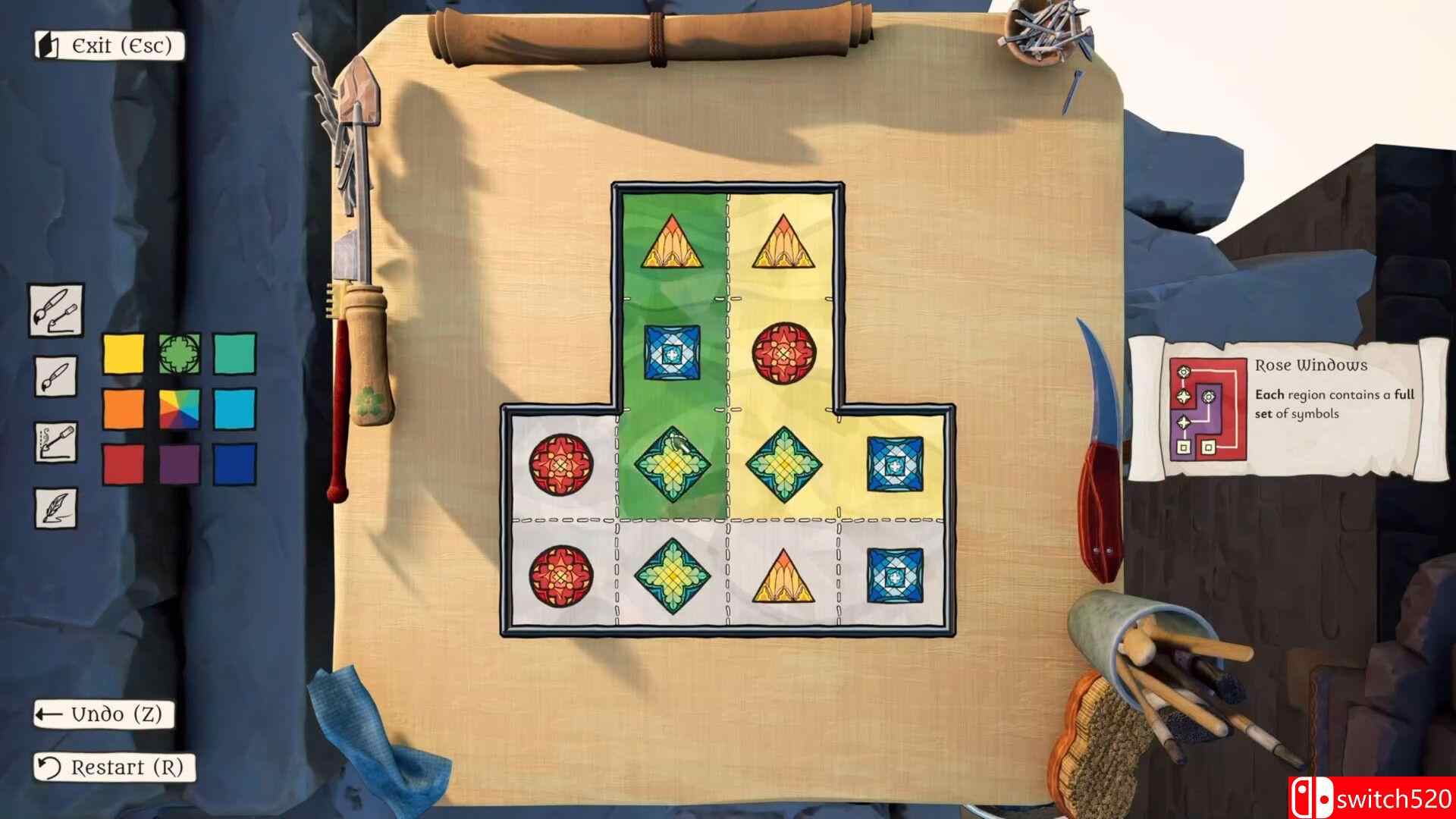 《格里米斯工匠》是一款策略类(SLG)游戏,《格里米斯工匠》 (The Artisan of Glimmith) 是一款温馨治愈的益智游戏。在这里,你将通过为彩绘玻璃着色,来修复云端王国的艺术瑰宝。探索一个由匠心打造、充满逻辑挑战的世界。在这里,简单的规则将引向令人赞叹的惊喜。switch520