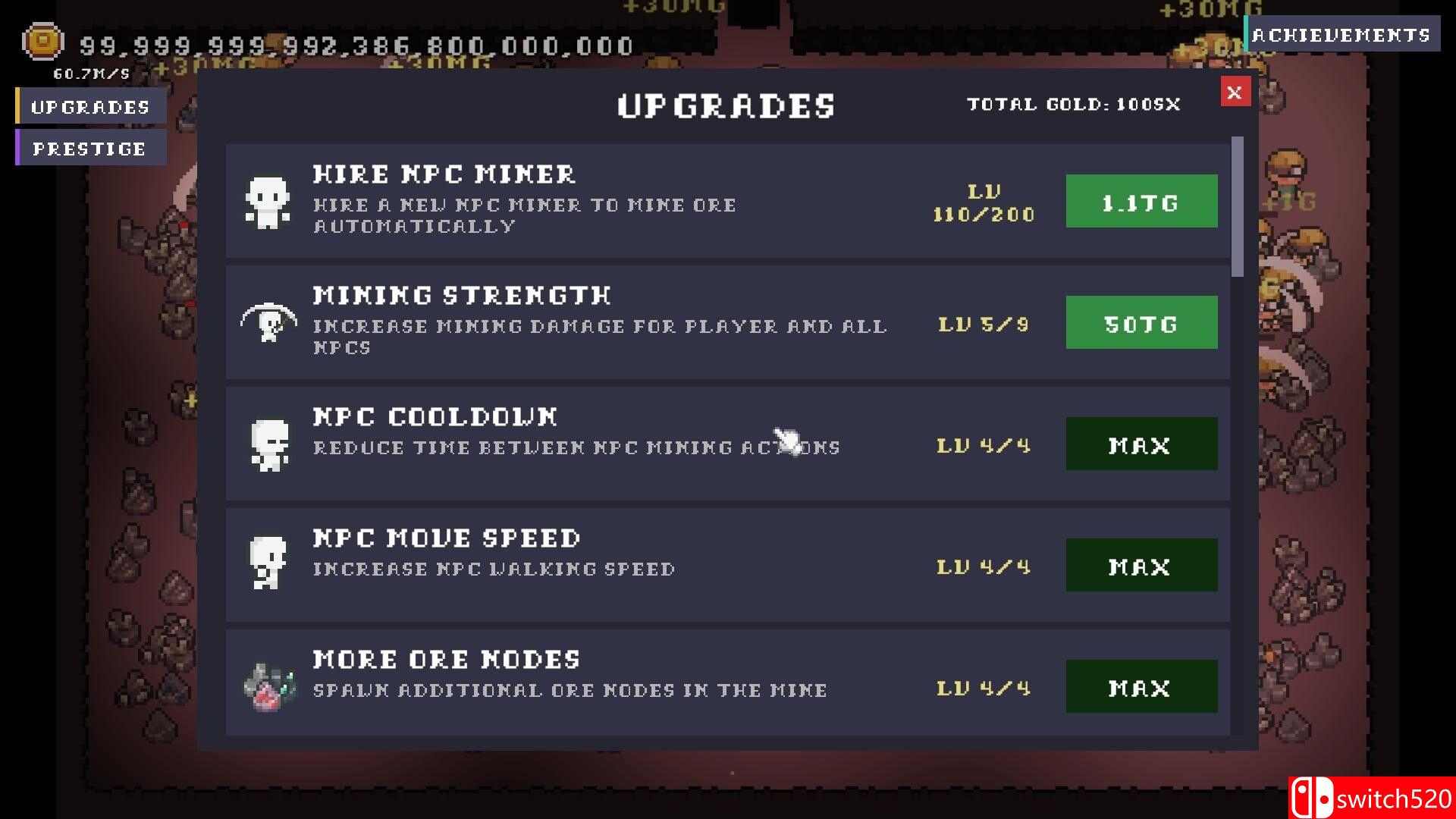 《我的增量矿工》是一款模拟经营类(SIM)游戏,《我的增量矿工》是一款将经典的横版动作探索与极度上瘾的增量(Incremental)点击机制完美融合的独立游戏。玩家将扮演一名勤劳的矿工,在无限延伸的地下世界中挥动锄头,挖掘各种稀有的矿石资源。游戏核心在于“指数级增长”的快感:通过挖掘获得的资源可以用来升级工具、雇佣自动挖矿助手、或者合成更高级的动力机械,从而让你的挖掘效率从“一铲一个”进化为“一秒一山”。本作拥有清爽的像素美术风格,并加入了轻度的战斗与随机事件系统,是喜爱挂机类、模拟经营以及采矿题材玩家的解压神作。switch520